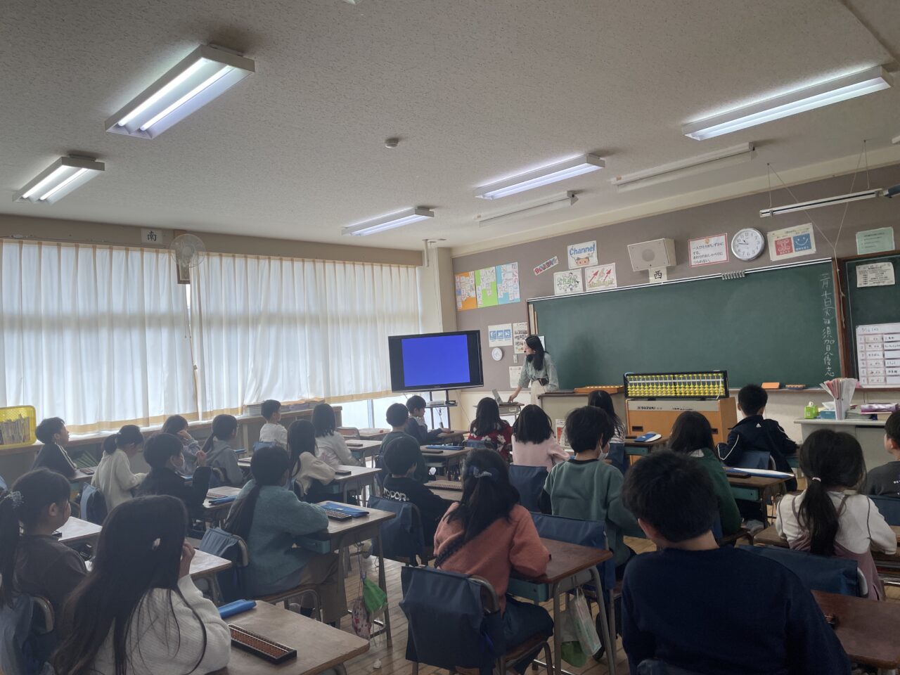 今回は、3年生4クラスの子どもたちにそろばんを教える機会をいただきました。